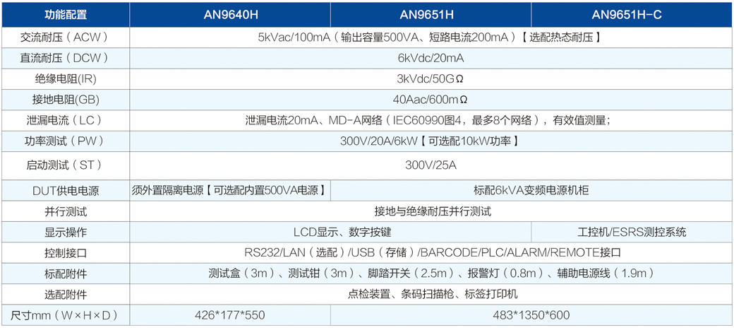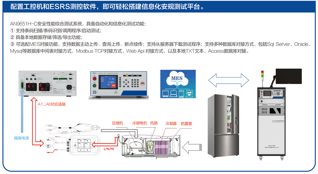 艾诺仪器公司专注安规测试仪器研发30多年,参与起草了16项安规仪器国家标准和行业检定规程。AN9640H系列智能安规综合分析仪,具有“全功能、高精度、高速度,自动化、信息化”等特点,满足家用电器等各类生产线的快节拍、多品种的安全性能综合测试需求。