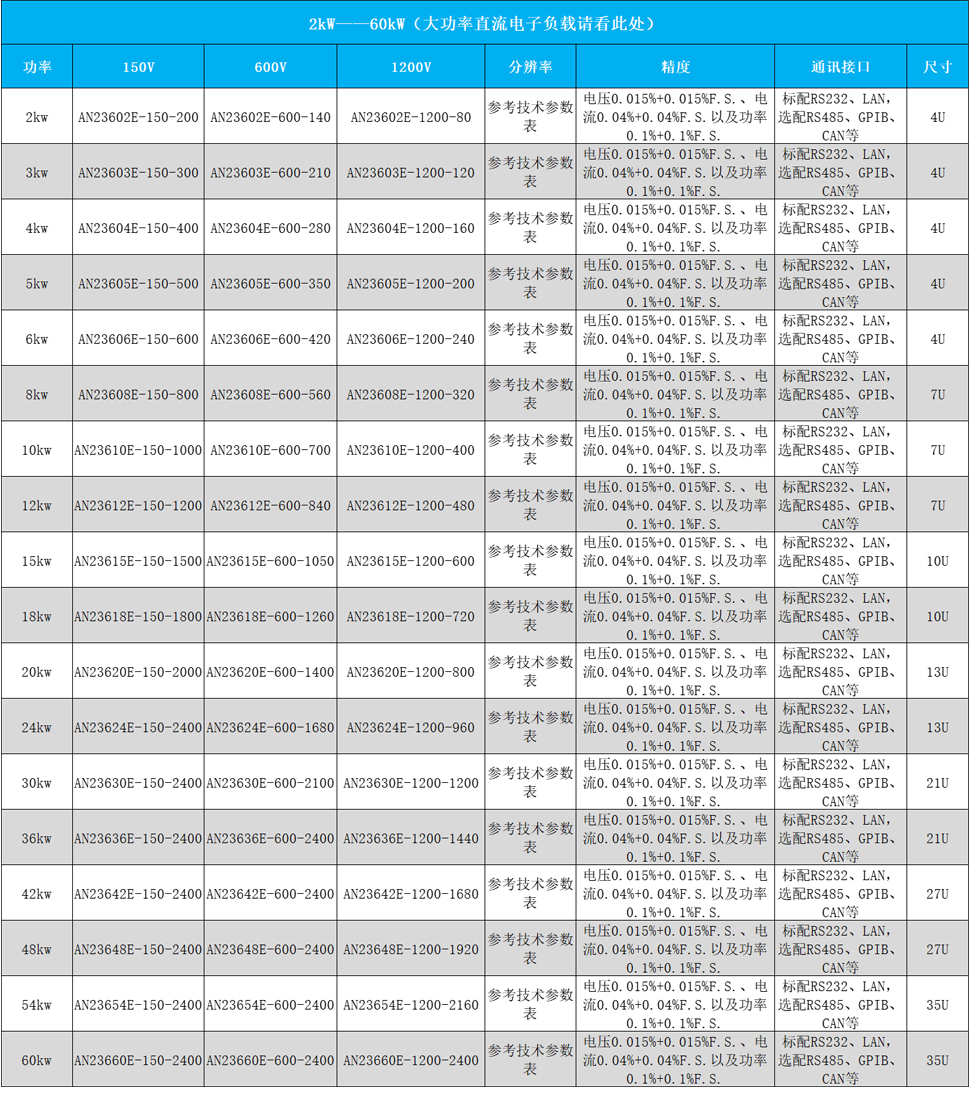 电流速升能力96A/μs 电压精度0.015%+0.015%F.S. 电流精度0.04%+0.04%F.S. 功率精度0.1%+0.1%F.S. 大功率960kW 电压0-1200V 电流0-2400A
