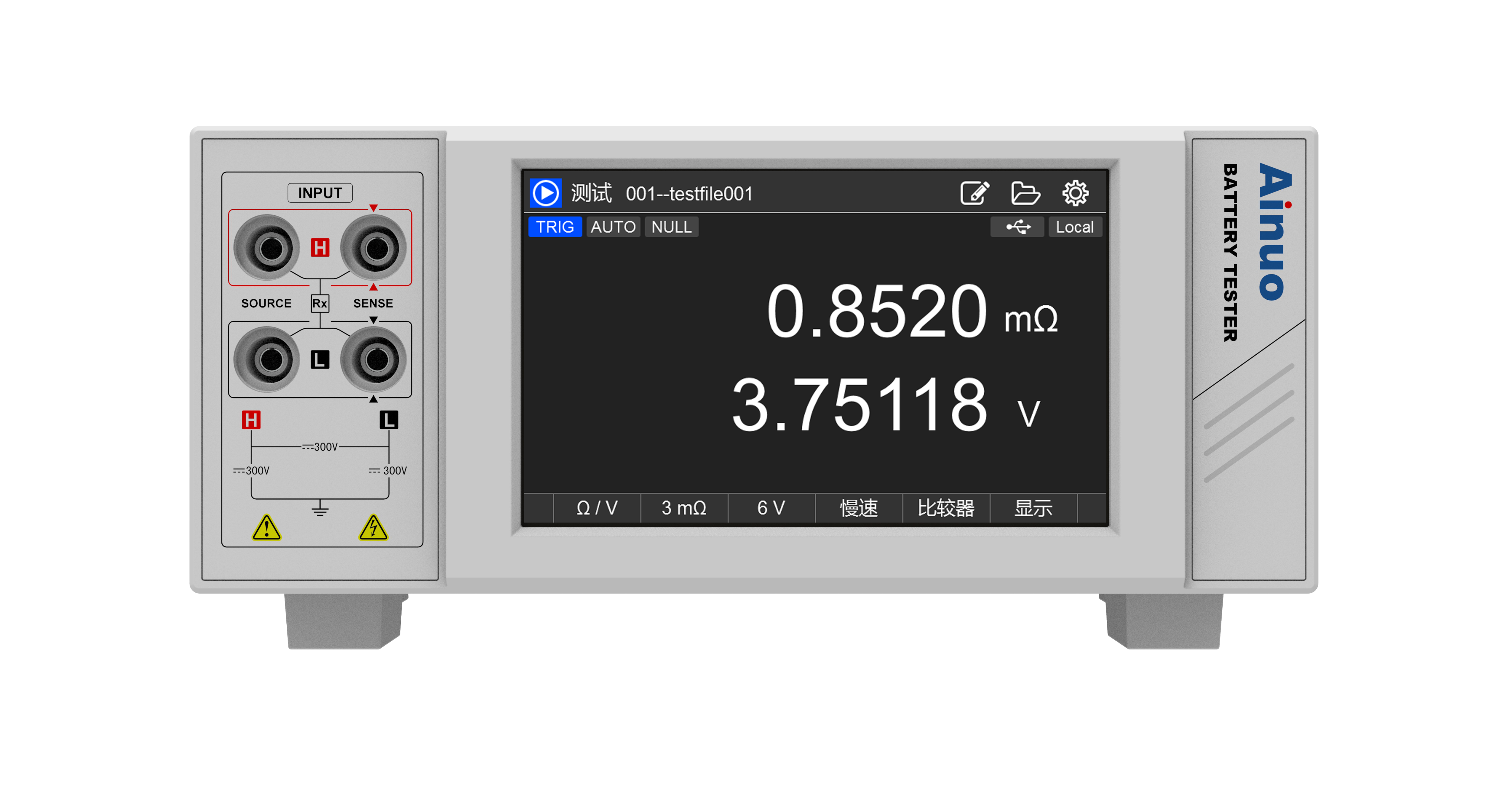■ ANBTS7503电池测试仪,提供6V/60V/100V/300V多档开路电压,3mΩ/30mΩ/300mΩ/3Ω/30Ω/300Ω/3kΩ多档交流内阻测试。测试仪适用于消费电池、动力电池、电池组和电池包的交流内阻和开路电压测试。