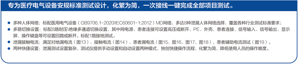 艾诺仪器公司专注安规测试仪器研发30多年,参与起草了16项安规仪器国家标准和行业检定规程。AN1640H-M系列智能安规综合分析仪,具有“全功能、合法规、易操作、信息化”等特点,全面满足医用电气设备安规标准测试要求。