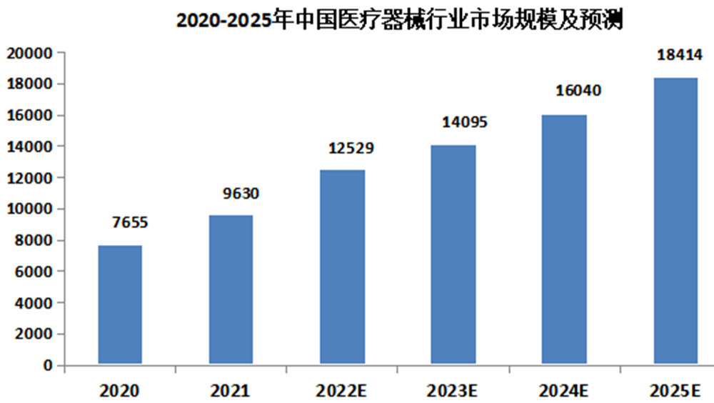 近年来,随着社会医疗卫生支出增加和健康意识增强,国家对医疗行业的发展日益重视,鼓励创新和审批制度革新等利好政策不断出台。在社会大势之下,未来我国医疗器械市场规模将会保持稳定增长。据艾媒数据显示,中国医疗器械行业市场规模预计2025年将达到18414亿元。