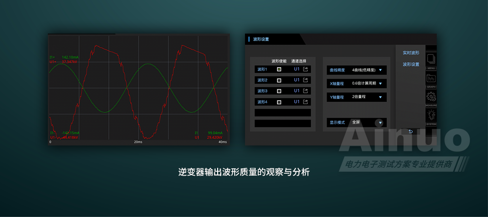 可显示各个通道的电压电流波形,分析逆变阶段在DC-DC和DC-AC转换中信号质量。