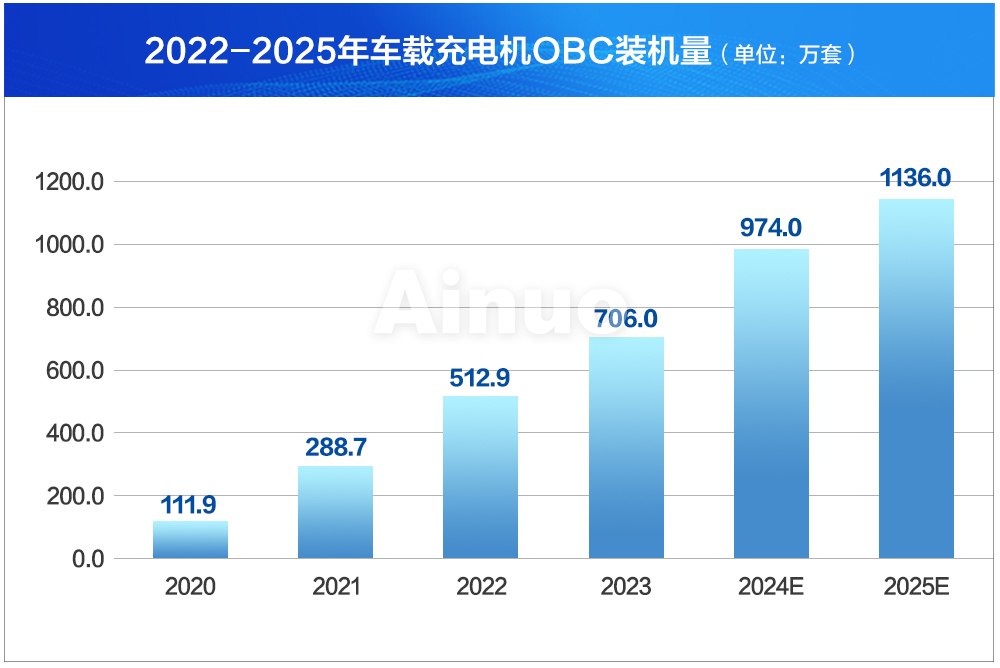 受益于新能源汽车市场扩张,其关键零部件车载充电机OBC装机量呈现快速增长态势。根据数据,2023年国内OBC装机量为706万套,同比增长37.6%,预计2025年将达到1136万套。