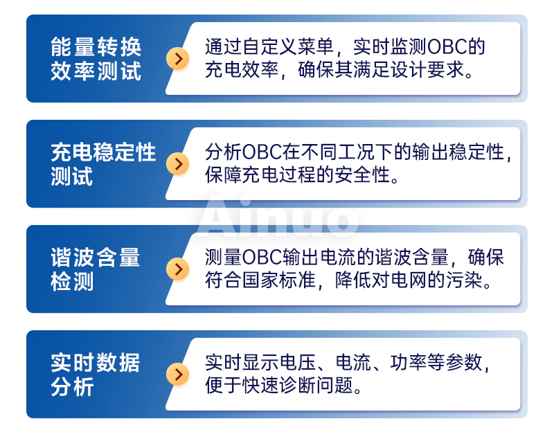 在充电技术向高压、高倍率快速发展的趋势下,电池的能量密度与续航能力得到了显著提升,进而推动了车载充电机OBC的技术革新。更高的电压转换能力对充电的安全性提出了更高要求。因此对BOBC进行全面而严格的测试,以确保其性能与安全性的双重达标,显得尤为重要。