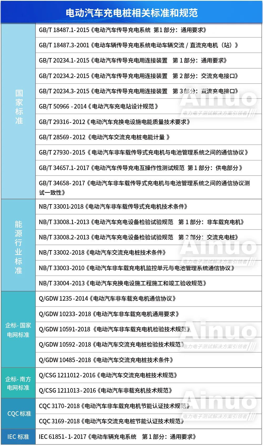 能源局标准:主要规定了充电功能、安全防护等检测方法与要求,是充电桩运营必须过检的标准;