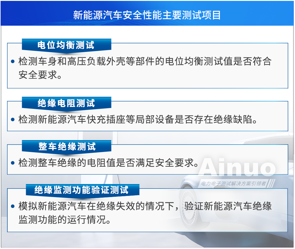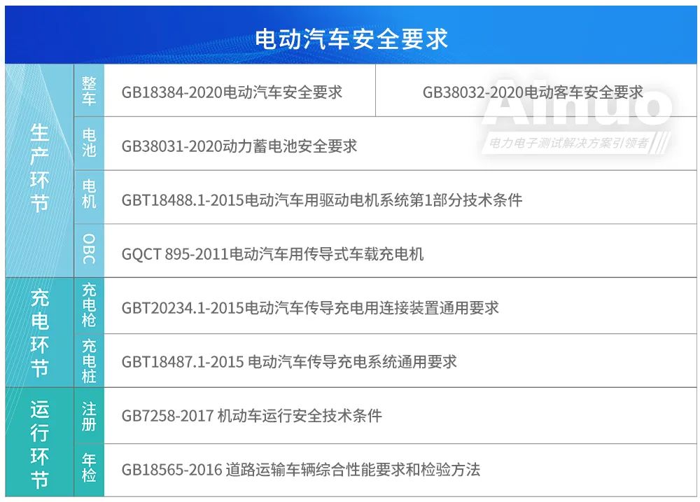 随着整体市场应用的规模增长,国家及相关部门对电动汽车的性能及安全性要求日益提升。针对安全问题,我国已建立起电动汽车产业链的电气安全标准体系,规定在其生产流程中,须经过严格的电气性能检测,以确保各项性能指标符合品质要求。