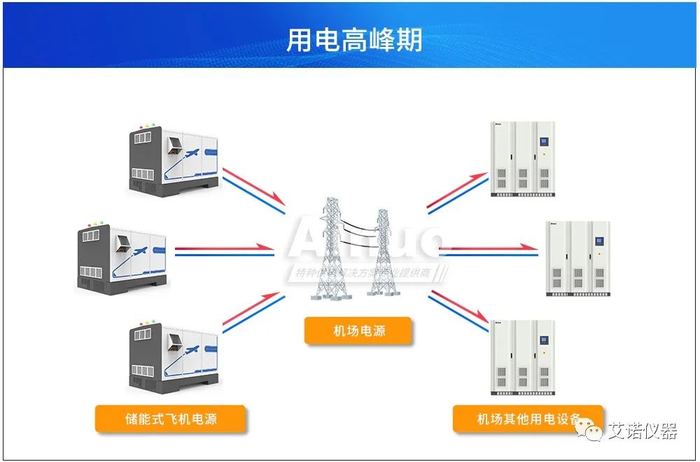 艾诺系统,在提供飞机地面供电保障外,还能利用储能电池中的余电,实现“削峰填谷”,即在用电高峰期向电网回馈能量,在用电低谷期补充电池能量,从而降低区域电网对容量的要求,提升使用效率,降本增效。