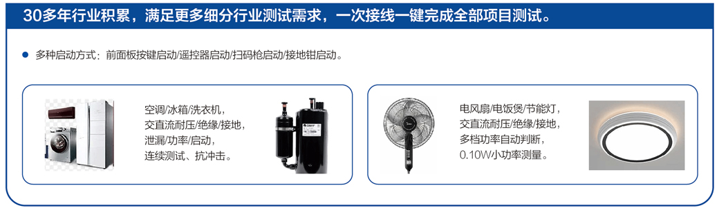 电气安规综合测试仪凭借其卓越的性能和精准的检测能力,已成为众多行业不可或缺的核心设备。它在保障电气设备安全性和可靠性方面发挥着关键作用,广泛应用于以下重要领域。