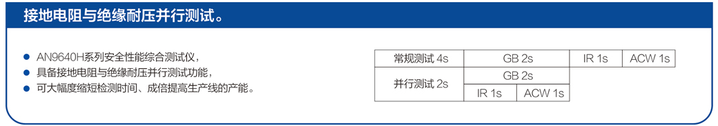 艾诺仪器公司专注安规测试仪器研发30多年,参与起草了16项安规仪器国家标准和行业检定规程。AN9640H系列智能安规综合分析仪,具有“全功能、高精度、高速度,自动化、信息化”等特点,满足家用电器等各类生产线的快节拍、多品种的安全性能综合测试需求。