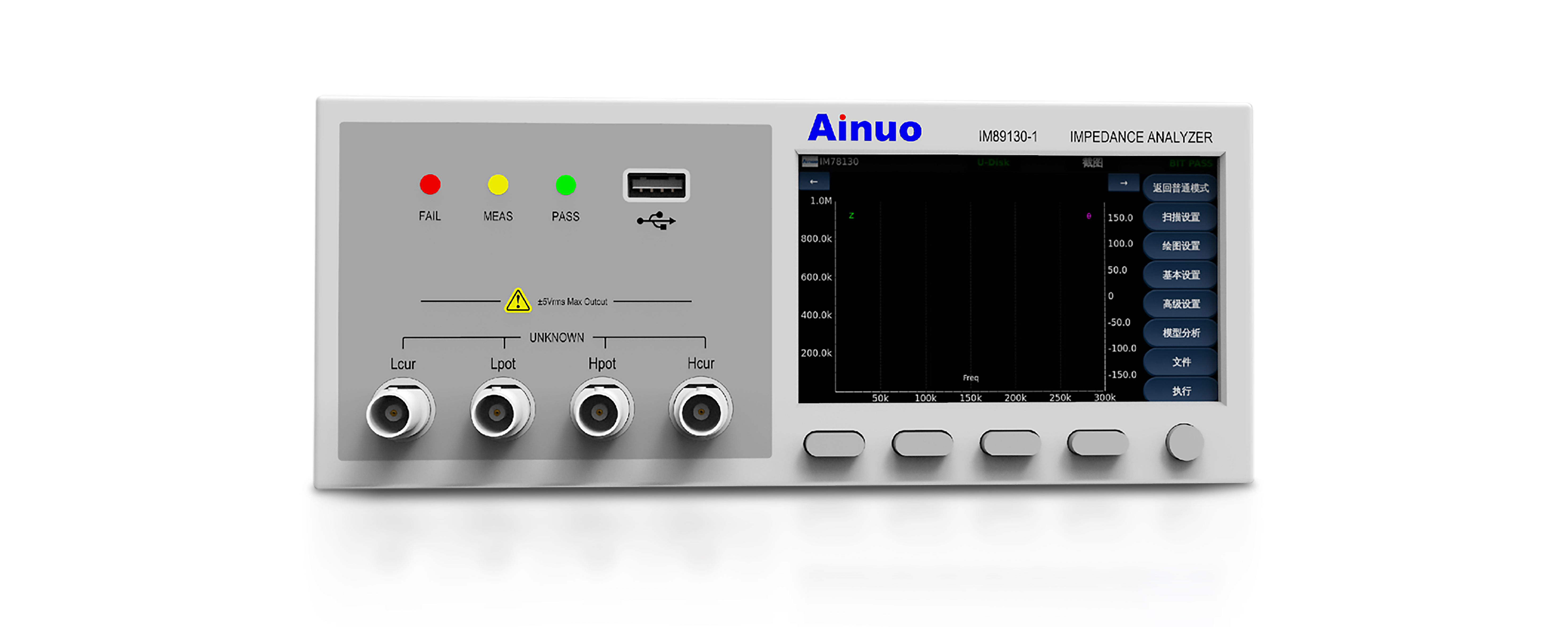 艾诺IM89130是一款精密电化学阻抗分析仪,专为电化学元件和电子元器件的精确阻抗测量与分析而设计。IM89130电化学阻抗分析仪集宽频率、高速度、高精度和多功能于一体,其频率范围覆盖1mHz至300kHz,最快测量速度可达2ms,基本精度高达±0.05%。它不仅支持基础的LCR测量,还具备扫描测量、Cole-Cole分析和等效电路分析等高级功能,可广泛应用于电池内阻测量与模型分析,以及电池材料的电导率、介电常数等关键参数的测试。