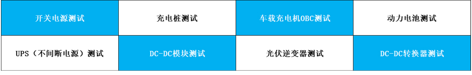电流速升能力96A/μs 电压精度0.015%+0.015%F.S. 电流精度0.04%+0.04%F.S. 功率精度0.1%+0.1%F.S. 大功率960kW 电压0-1200V 电流0-2400A