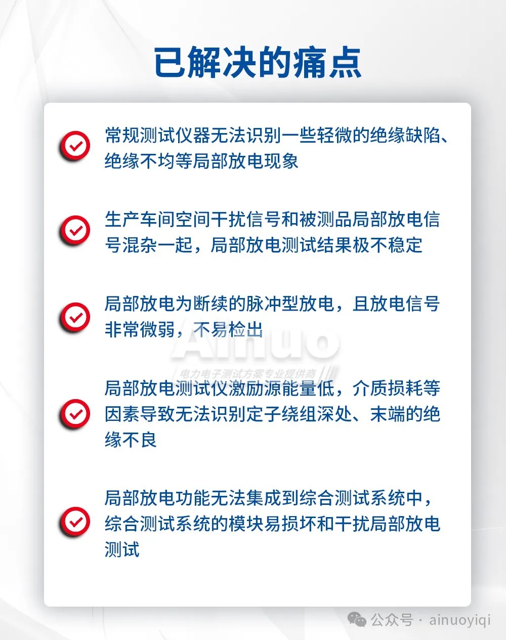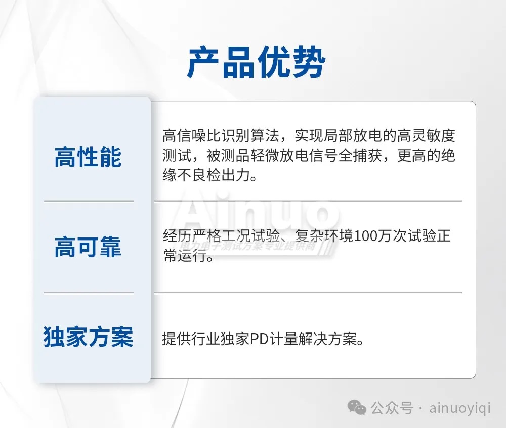 针对新能源驱动电机行业测试难题,艾诺公司充分发挥技术优势,专项研发并推出了局部放电测试仪AN8A10PD系列。该系列采用超高频局部放电检测技术(UHF),能够精确捕获被测产品的局部放电信号,为客户提供精准、可靠的测试数据。有效解决新能源驱动电机测试行业难点,并在众多客户的产线应用测试中获得好评。