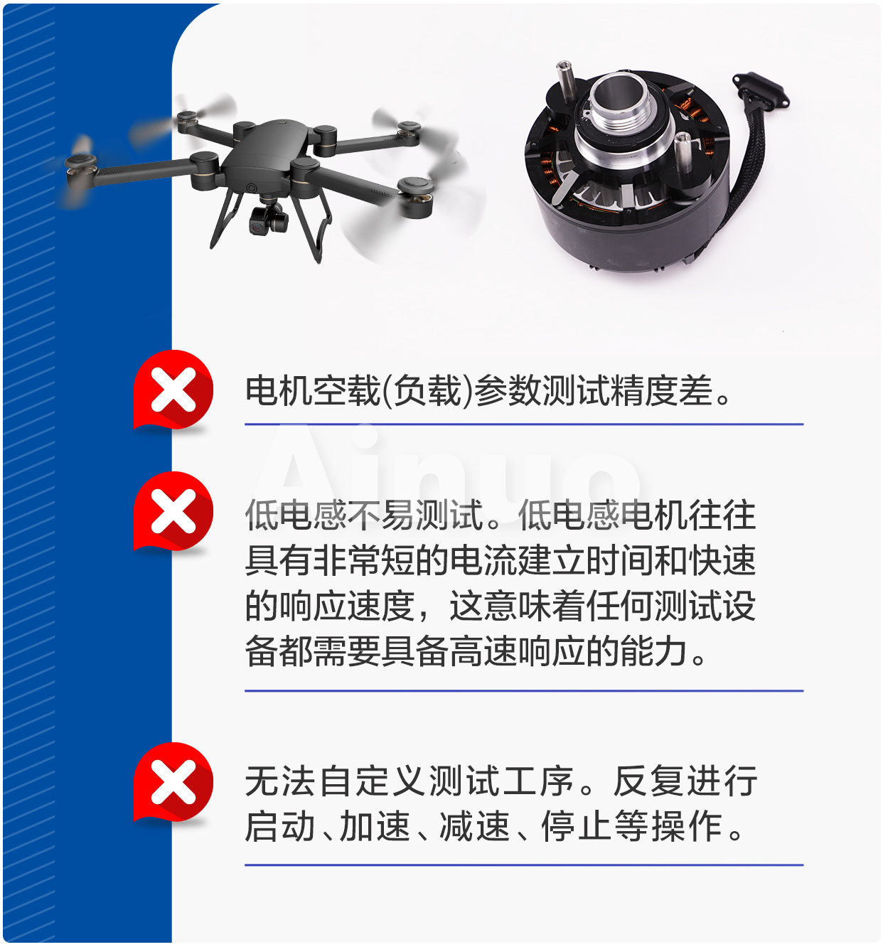 针对无人机电机行业的测试需求,艾诺公司充分利用自身技术积累,推出的无人机电机测试方案AN8AYX系列产品,旨在为客户提供精准且可靠的测试数据,有效应对无人机电机测试中的行业难点。在众多客户的产线测试应用,并获得了广泛的认可与赞誉。