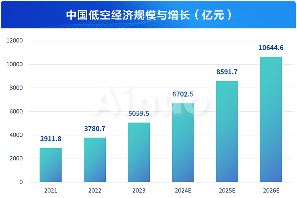 在政策及产业的双重驱动下,低空经济正在成为推动经济增长的新引擎。据数据显示,2023年我国低空经济规模为5059亿元,同比增长33.8%,预计到2026年规模将突破万亿。市场的景气度促使无人机技术及相关组件快速发展。