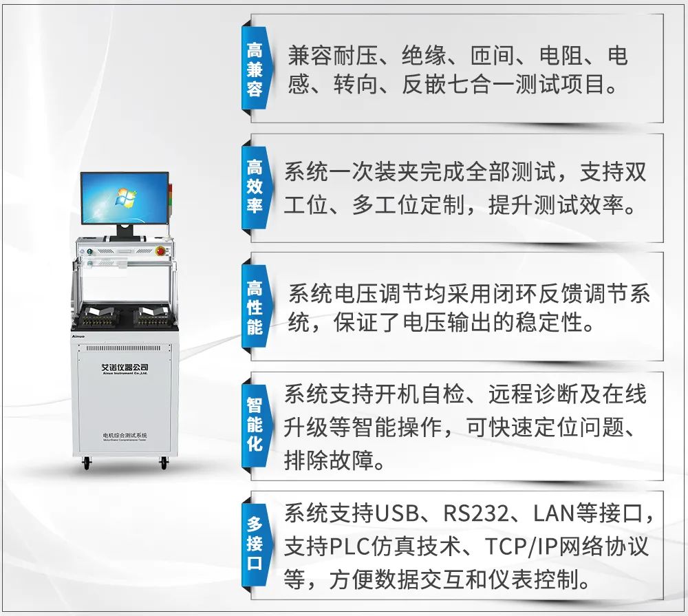 艾诺仪器深耕行业多年,针对无刷直流电机定子开发的痛点,为之开发出无刷直流电机测试AN83YX系列产品。
