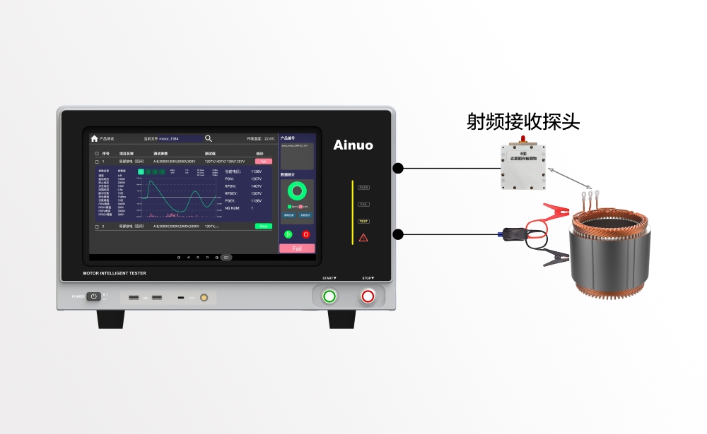 艾诺仪器在电机测试领域深耕多年,深入考察扁线新型工艺痛点,针对该测试难点,专项研发并推出了局部放电测试仪AN8A10-PD系列。该系列采用超高频局部放电检测技术(UHF),能够精确捕获被测产品的局部放电信号,可为客户提供精准、可靠的测试数据。