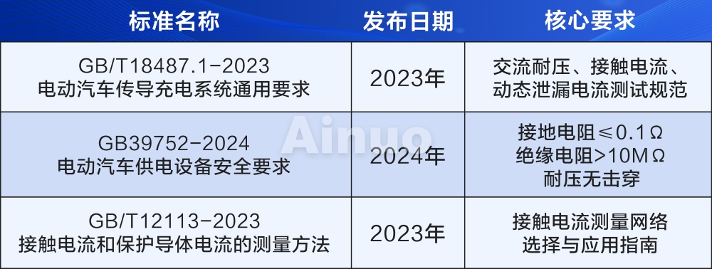 充电桩作为高压大功率设备,其全生命周期均存在安全风险,包括因漏电和绝缘失效引发的触电风险、耐压不足可能导致的短路或火灾风险。受国家政策和标准的双重驱动,自2025年3月1日起,充电桩将强制纳入CCC认证体系,并自2026年8月起禁止流通未认证产品。同时,GB39752-2024、GB/T18487.1-2023等标准对接地电阻(≤0.1Ω)、绝缘电阻(>10MΩ)及耐压漏电流(≤10mA)等关键指标做出了明确规定。因此,电气安规测试不仅是确保充电桩产品合规的“入场券”,更是企业履行安全责任、维护品牌信誉的基石。