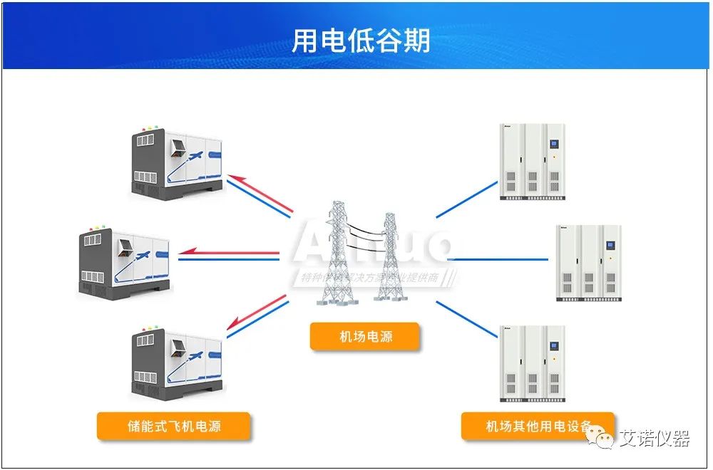 艾诺系统,在提供飞机地面供电保障外,还能利用储能电池中的余电,实现“削峰填谷”,即在用电高峰期向电网回馈能量,在用电低谷期补充电池能量,从而降低区域电网对容量的要求,提升使用效率,降本增效。